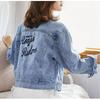 Women'S Denim Jacket For Students, Korean Style, Loose Fit, 2024 Autumn New BF Embroidery Loose Fit Hong Kong Style Denim Top For Women, Trendy