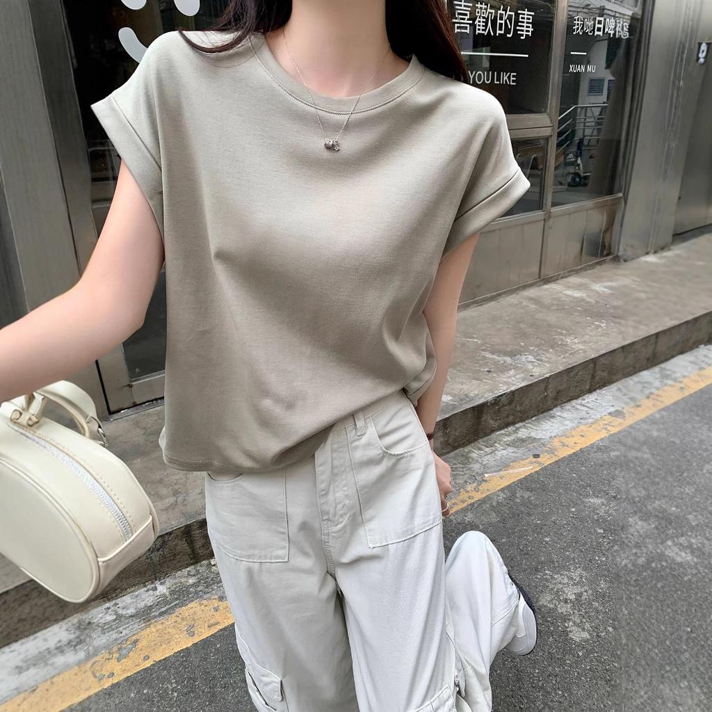 Camiseta de manga corta para mujer Delante de los hombros y Camiseta de manga corta para mujer En verano Diseño Nicho Camiseta para Chaleco Top de manga mariposa