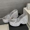 Liyke Summer Fashion PVC Transparent Women Slippers Sequined Platform Wedges High Heels Shoes Sexy Peep Toe Sandals Ladies Gold