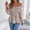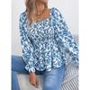 Blusa y Camisas de Chifón para Mujer Primavera Verano Manga Larga Cuello Sequre Estampado Floral Camisa Tops blusas