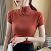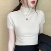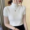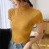 Moda Primavera y Otoño Cuello Medio Alto Camiseta de Punto Suave Manga Corta Top de Mujer Delgado Fino Cálido Bajo Casual Esencial Ajustado Jerséis Camisetas