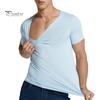 Camisetas de Seda de Hielo para Hombre Casual Manga Corta Deportiva Verano Transpirable Humedad Cuello en V Camiseta Interior Top