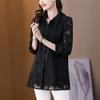Large Size Chiffon Shirt Women's Loose Hollow Top Lace Bottom Shirt Fashionable