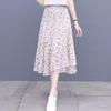 Women High Waisted Floral A-line Skirt Half Length Skirt Summer Pleated Skirt Medium Length Dress