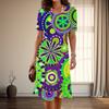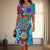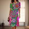 Moda Femenina Elegante Estampado de Patrón Retro Verano Primavera Manga Corta Cuello O Vestidos Casuales