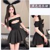 Sexy Underwear, Sexy Hollowed-out One-word Shoulder Ice Silk Nightdress, Pure Desire, Lotus Leaf Edge, Super Short Free Women