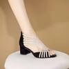 Zapatos de Mujer Nuevo Tacón Cubierto Puntera Descubierta Sandalias de Mujer Moda Banda Estrecha Vestido Sandalia Elegante Mujer Cremallera Trasera Tacones Gruesos Femenino