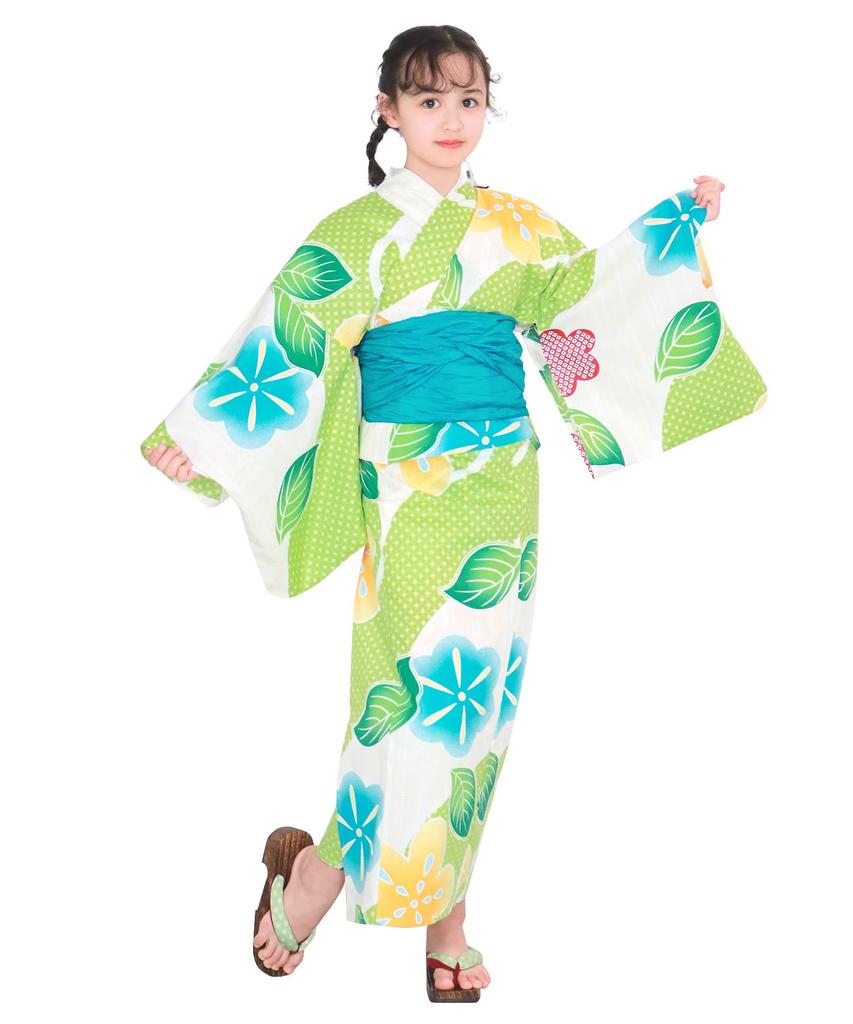 Conjunto de Cambio de Yukata Heiko para Niñas Junior En Busca del Pueblo Donde Florecen [KYOETSU] Conjunto, Yukata, Tipo de Dos Piezas, Niñas, Crudo, Tejido, 3 piezas