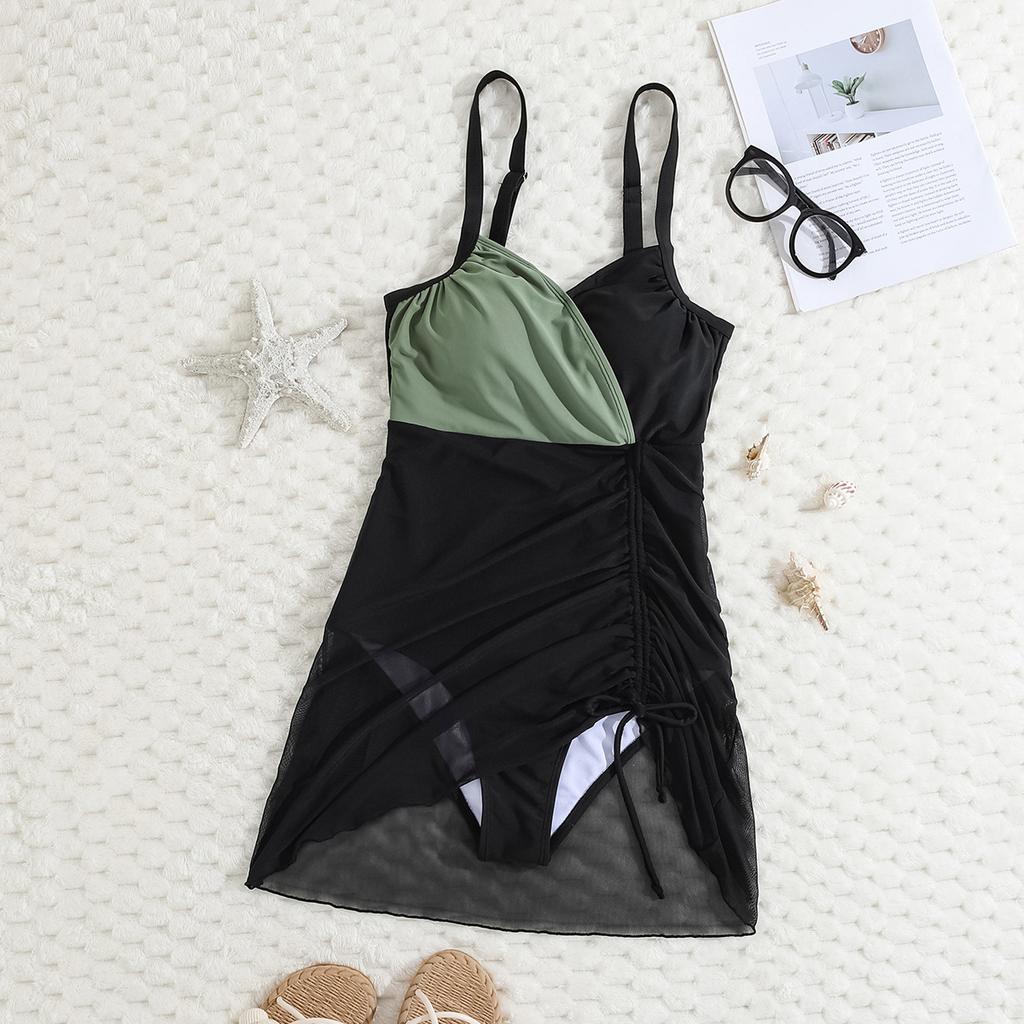 Traje de baño de mujer Color Block Malla Cordón Ajustable Slim Traje de baño de una pieza Conjunto de bikini Ropa de playa Trajes de baño