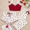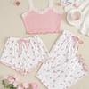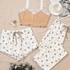 Conjunto de Tres Piezas Conjuntos de Pijama para Mujer Chaleco Estampado Pantalones Cortos y Pantalones Pijamas Tejido Acanalado Suave Informal para el Hogar Conjunto de Ropa de Dormir