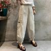 Pantalones Casuales de Mujer Cómodos con Bolsillo Elásticos Transpirables Algodón Lino Pantalones de Cintura Suelta Harajuku Pantalones de Moda Coreana