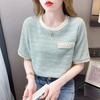 Camiseta de Punto de Diseño Veraniego para Mujer Color Sólido Manga Corta Top Sencillo