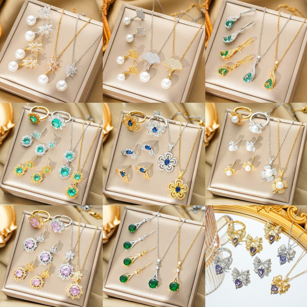 Light Luxury Flower Iris Imitation Red Sapphire Necklace Versatile Fashion Temperament Set for Women