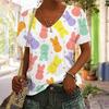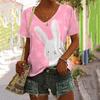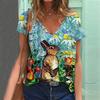 Summer V-neck 3D Rabbit Printed Top Fashionable Casual Short Sleeved Women's T-shirts