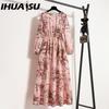 IHUASU 25 Colores Primavera Vestidos Maxi para Mujer Casual Manga Larga Estampado Floral Cuello Redondo Vestido Largo para Dama Bohemio Fiesta en la Playa Mujer Vestidos Vestido Musulmán