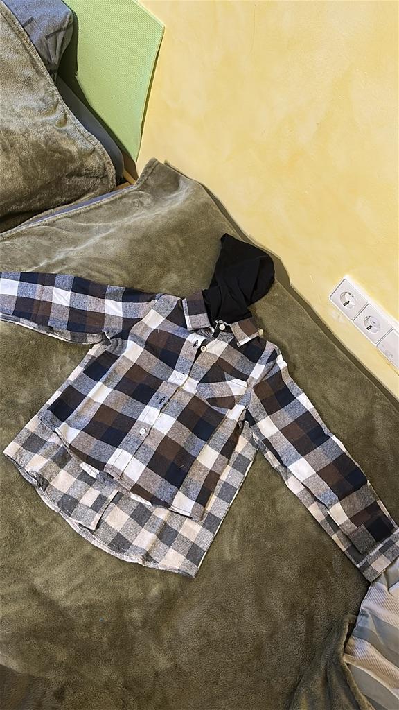 Camisa de Cuadros para Adolescentes Niños Ropa Exterior Casual con Capucha Primavera Otoño Manga Larga Moda Combinable Blusa para Niñas 2-7 Años Tops para Niños