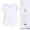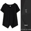 This stylish T-shirt, designed with a modern twist, features a flattering V-neckline and short sleeves, perfect for a casual and trendy look. Made entirely from cotton, it ensures comfort and breathability, making it ideal for everyday wear. The solid pattern provides a clean and timeless appearance, while the irregular hem adds a unique, fashionable flair. This piece effortlessly combines classic design with a contemporary edge, aligning with the latest in Korean fashion trends for 2022.