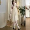 Dulce Vestido de Verano de Maternidad con Encaje Jacquard de Cuello en V y Bordado
