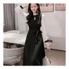 Vestido Negro Corto de Manga Larga para Mujer Otoño 2024, Corte Ajustado, Talla Grande, Estilo Coreano, Largo Medio, Diseño Elegante