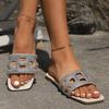 Large Size, Slippers, Ladies', Rhinestones, Flat Bottomed, Sandals, Outerwear, Square Toe, Sandals