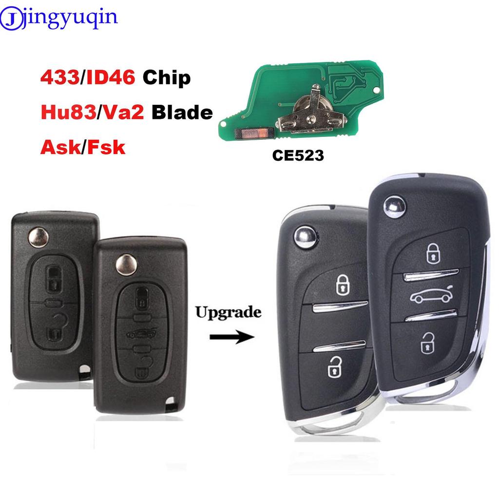 jingyuqin ASK/FSK 433MHz ID46 Chip CE0523 Modified Flip Remote Key Fob for Peugeot 307 407 607 HU83/ VA2 Blade 2 3 Button Key