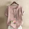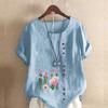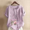 Camiseta de manga corta con estampado de flores para mujer, camisa holgada de algodón, blusa informal holgada de verano, tallas grandes