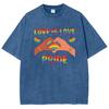 Loose Washed T-shirt Denim Loose Round Neck Colorful Letters Printed Large Size Unisex Short Sleeve Street American Retro
