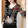 Spring Autumn Fashion Women's V-Neck Letter Printed Sexy Mesh Patchwork Basic T-shirts Elegant Long Sleeve Slim Ladies Tops