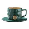Juego de Taza de Café de Cerámica con Platillo, Taza de Agua Verde con Sello de Cobre