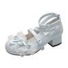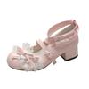 Zapatos de cuero pequeños lazo lindos zapatos Mary Jane 2025 nuevos loli mujeres dulces borde de encaje tacón grueso hebilla zapatos de cuero