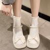 French fashion Mary Jane small leather shoes women's spring new thick-soled heightening bow with skirt thick heel high heel single shoes