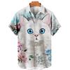 Camisa de Hombre con Estampado de Gato Lindo Divertido Anime Gatos Camisa de Hombre con Botones Cuello Solapa Moda Hawaiana Manga Corta Camisa Casual