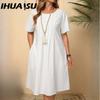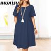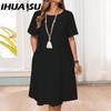 IHUASU Vestidos casuales de cintura alta con cuello redondo y estampado de colores sólidos para mujer, moda de verano y primavera