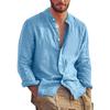 Camisa Nueva de Manga Larga para Hombre de Color Sólido Camisas de Lino Algodón Tendencia Talla Grande Cuello Mao Casual Ligera Tops de Playa
