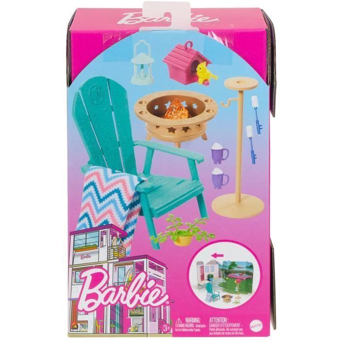 Barbie mobilier - hjv33 - ensemble décoration de maison de poupée barbie - terrasse de jardin, feu de camp, mangeoire à oiseaux et n