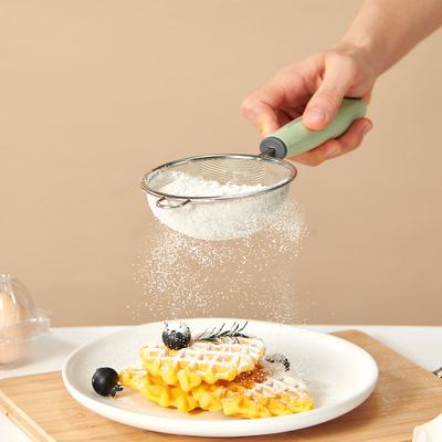 304 Stainless Steel Flour Sieve With Plastic Handle Fine Mesh Strainer Spoon Soybean Milk Juice Filter Kitchen Utensil