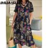 IHUASU Vestidos casuales de cintura alta con cuello en V y manga corta con estampado de Color sólido a la moda para mujer