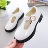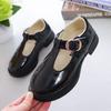 Zapatos de cuero para niñas, con tiras en T, a la moda, para la escuela, negros, con recortes, para primavera y otoño, planos, medianos, de princesa.
