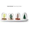 Juego de 4 tarros para especias, bonitos, transparentes, de polipropileno, para las cuatro estaciones, con diseño de plantas y animales.