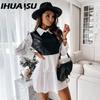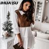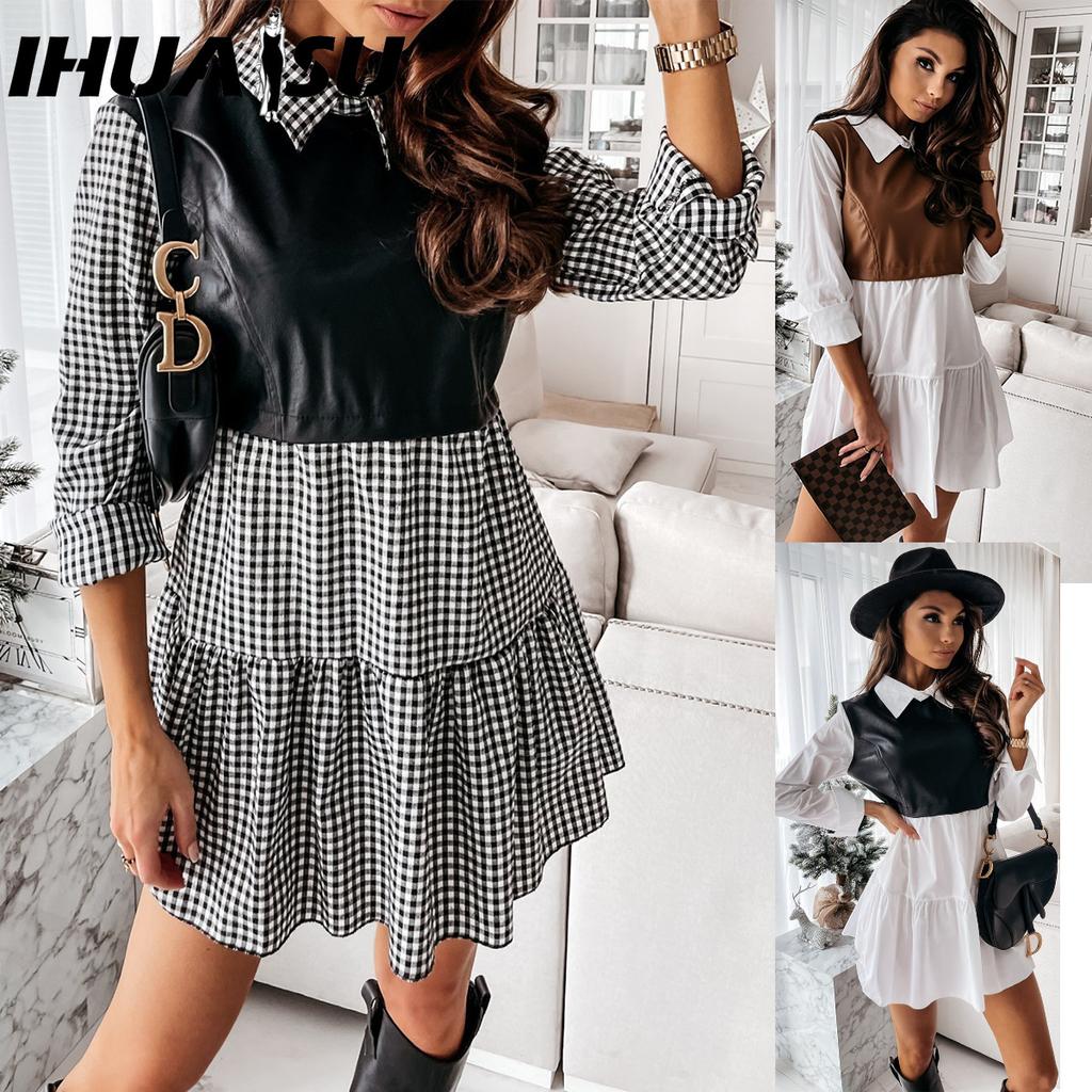 IHUASU Vestido de Cuero a Cuadros Patchwork para Mujer, Minivestido de Fiesta Casual, Vestido de Primavera con Volantes
