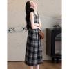 2025 summer new cotton double-layer yarn round neck plaid long dress design sense niche sleeveless dress women
