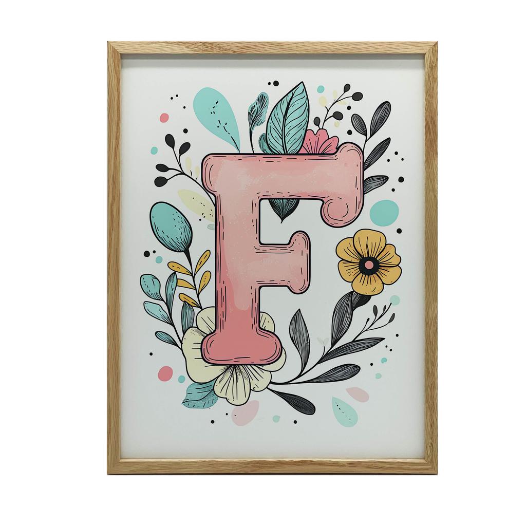 Ekskluzywność w Twoim domu – Plakat „F” z kwiatami w drewnianej ramie