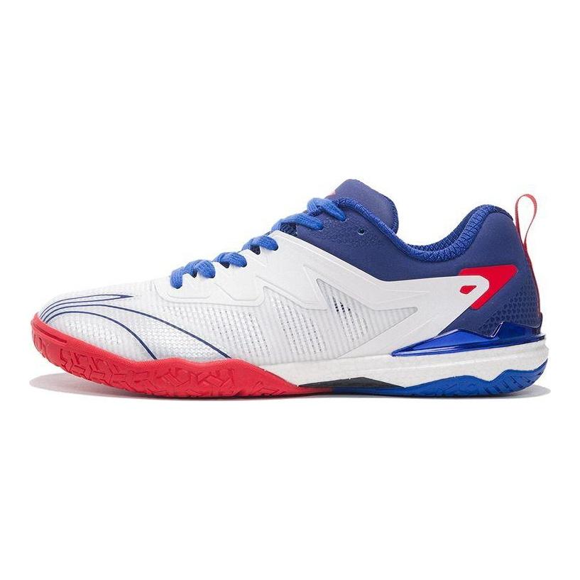 Li Ning Qilin 2.0 Material de Rebote de Tela Zapatillas de Entrenamiento de Caña Baja para Tenis de Mesa Hombre Zapatilla Blanco Azul Rojo APPR001-2