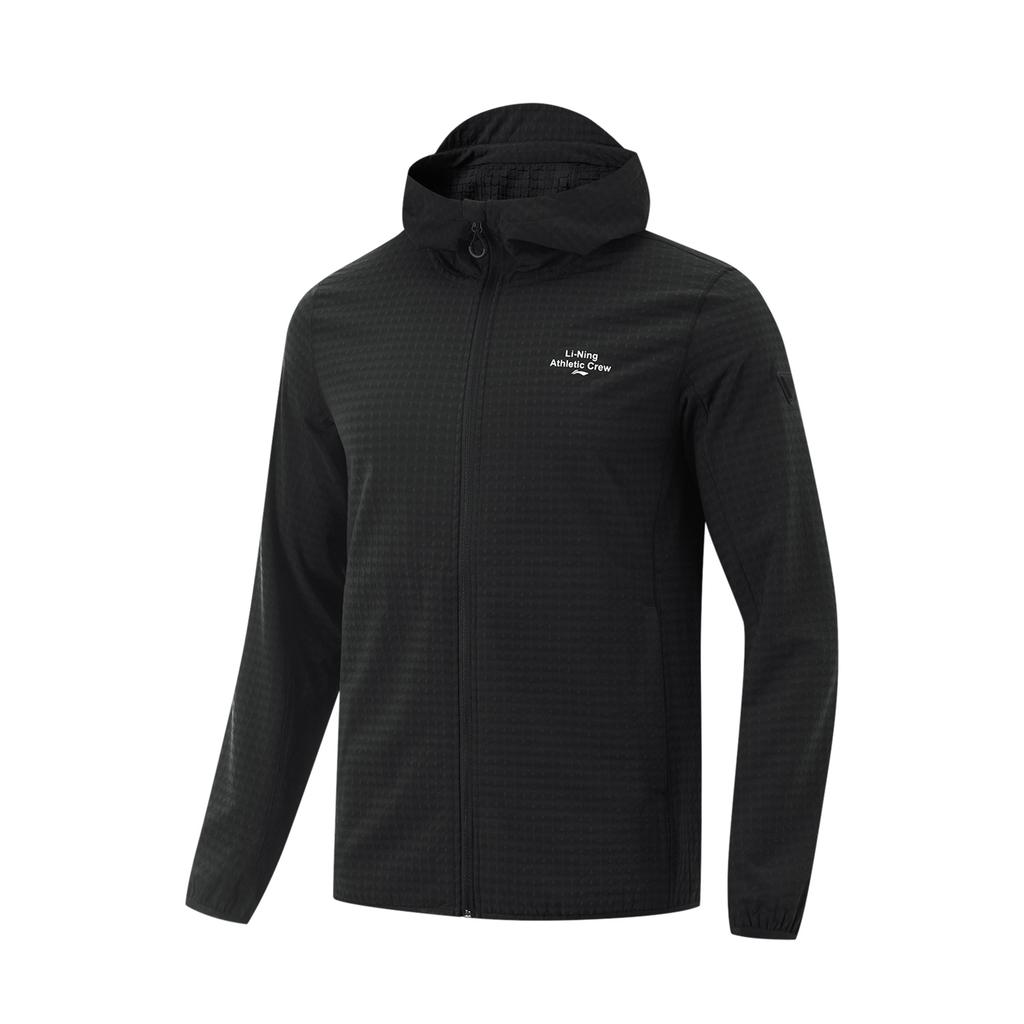 LiNing Fitness Series Outdoor Cycling Camping Windproof Fleece Adaptive Temperature Control Warm Hooded Windbreaker Men Outerwear Black AFDU925-1