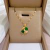 Stainless Steel Green Zircon Flowers Pendant Necklace For Women New Luxury Girls Lucky Chain Birthday Jewelry Gifts