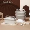 Fiambrera de 2 capas 1400ml Interior de acero inoxidable Carcasa de PP Apta para microondas Recipiente para el almuerzo con cubiertos