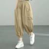 Pantalones Casuales de Verano para Mujer de Algodón-Lino Talla Grande Literarios Sueltos de Cintura Alta Adelgazantes Versátiles Estilo Coreano Pantalones Harem de Siete Puntos