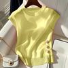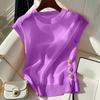 French Light Luxury Style Beautiful Pink Round Neck Knitted Sleeveless T-shirt for Women In Summer Chic Age-reducing Top