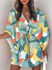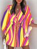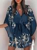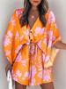 Vestido Mini de Verano para Mujer Suelto Cuello en V Cordones Manga Murciélago Estampado Fiesta en la Playa Vestido con Botones