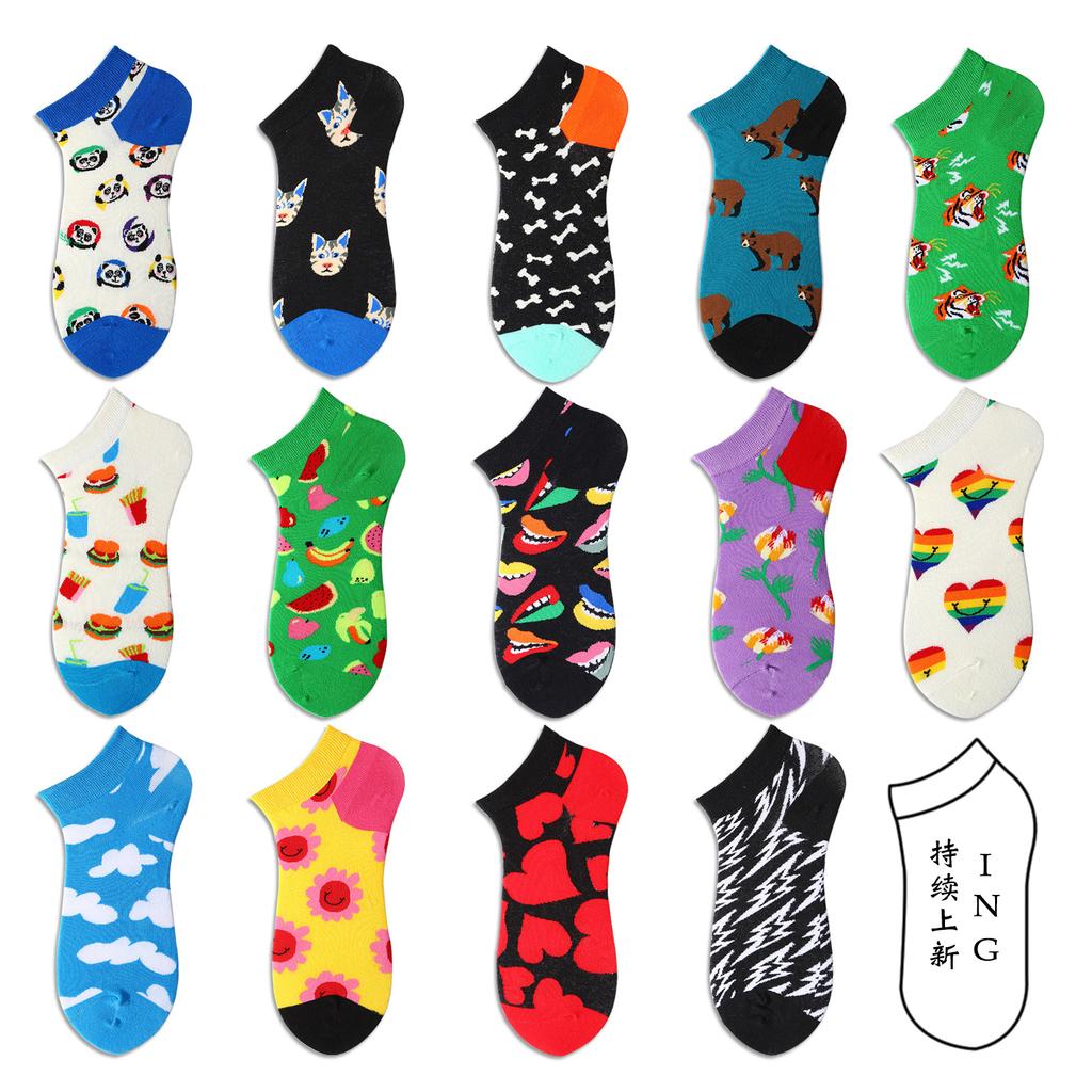 Spring Summer Socks Men Women Sock INS Brand Panda Printed Cotton Socks Europe America Street Short Low Cut Unisex Funny Sox